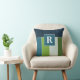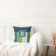 Big Stripes in blue and green with Monogram Throw Pillow