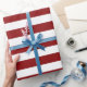 Big Stripes LinesRuby Red Metallic Effect White Wrapping Paper