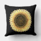 Big sunflower, hearts and golden polka dots on black background Throw Pillow. Elegant decorative Pillows. Beautiful Home Decor.