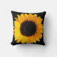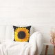 Chic designer accent throw pillow done in your choice of background colour, with a big yellow sunflower, on both sides. Customize to add any text you want to this pretty floral pillow.
