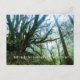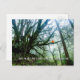 Big trees, amazing adventure postcard with custom message from teacher. Welcome students to class this school year by sending out mailers. This one has a photo of big tree branches in a forest with a single person sitting on a limb.