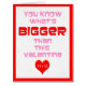 This big Valentines Day card features the words "YOU KNOW WHAT'S BIGGER THAN THIS VALENTINE" on it with a heart which can be personalized with your initials. Inside it says, "My LOVE for you! Happy Valentine's Day" This is a great big valentine for your sweetheart or husband or wife. Copyright Kathy Henis