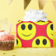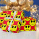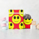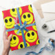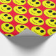 Big Yellow Smiley Allover-really is exactly as it's title. Not much description is needed.The large yellow smiley face with black slightly beveled eyes and a smiley mouth. A black rim circles the edges. The smiley has been reduced in sized and tiled to create an allover background pattern. The background is bright red. The big yellow smiley design is available with assorted background colours. Coordinating party supplies is available. You choose the gift wrap style, glossy or matte. You choose the size roll you need.