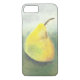 Big yellow pear against a forest green and a grayish green background. Still life done in oil pastel. Fresh and juicy.