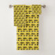 Bath towel set features an original marker illustration of a yellow school bus on a yellow background.