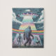 Bigfoot, Alien, and Unicorn with a UFO Jigsaw Puzzle