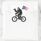 The riding in Ohio is amazing, roads, trails, they have it all! Ride your bike in Ohio! This design is bigfoot riding a bike holding an Ohio flag and giving a shaka sign.