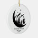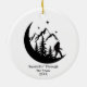This ornament features a silhouette of Bigfoot walking through a forest with mountains and a sky full of stars on the foreground surrounded by a crescent moon, capturing the spirit of wilderness and mystery. Below the image is a funny phrase "Squatchin' Through the Snow" and an option to add the year. This design invokes an inspiring a sense of wonder in the unknown making it ideal for adding a unique, artistic touch to your Christmas Tree. Whether you’re a Bigfoot enthusiast or simply drawn to nature-inspired designs, this ornament is a perfect way to express your adventurous spirit and remind yourself to always believe in the extraordinary. Customize it with a different phrase and add a custom year.