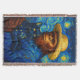 Bigfoot with Cat in Van Gogh Style Starry Night Throw Blanket