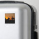 A small herd of bighorn sheep settle down for the night. Their silhouettes stand against the blazing sunset behind them. Computer art by Kathie Miller.