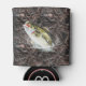 A realistic jumping largemouth bass on the front and back on a camo background and a triple hook logo on the bottom.