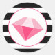 Un autocollant représentant l'illustration d'un bijou rose à l'intérieur d'un cercle sur un arrière - plan rayé noir et blanc. Recherchez les invitations aux fêtes de pirates à la poitrine au trésor assorties au Jill's Paperie.