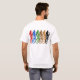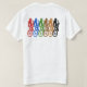 Our t shirt for bike racing fans features a team of cyclists in different colours, red, blue, green, brown, orange and black.