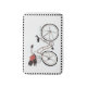 Enjoy stepping directly from the shower to your bike! This playful bathmat shows a bicycle with a basket holding a dog and a bunch of flowers. Black, white and a touch of colour will work in any bathroom. Background colour can be customized.