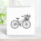 A simple illustration of a women’s bicycle. The front basket is filled with flowers.