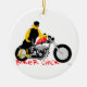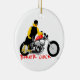 BIKER CHICK Sitting on Her Motorcycle Ceramic Ornament