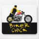 BIKER CHICK Sitting on Her Motorcycle Mouse Pad