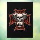 Biker Cross Skull Motor Flames Motorcycle Shop Window Cling