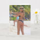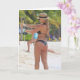 GRANDE CARTE D'ANNIVERSAIRE DE FILLE DE PLAGE EN BOTTOMÉ. MESSAGE LITS : CETTE CARTE EST AUSSI VOTRE CADEAU.