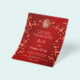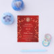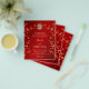 BUDGET paper. This version has the parent's names in the headline. Red cherry blossom branches and a gold double happiness symbol on a red background. With a traditional Chinese text on the backside.