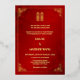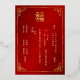 This traditional Chinese wedding invitation features a golden Asian frame and gold foil double happiness symbol on a shimmering red background. With a traditional Chinese text at the backside. This version has the parent's names in the headline.
