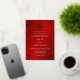 This traditional Chinese wedding invitation features a golden Asian frame and gold foil double happiness symbol on a shimmering red background. With a traditional Chinese text at the backside. This version has the parent's names in the headline.