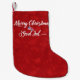 This holiday Christmas stockings are available in a variety of styles and sizes, on a seasonal snowflake pattern background.