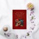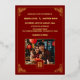 This elegant Chinese wedding invitation features a photo, a gold foil Chinese frame and round gold double happiness symbol on a dark red background. With a traditional Chinese text at the backside. Chinese wedding invitation or tea ceremony invitation.