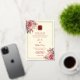 This modern Chinese wedding invitation features a real gold foil double happiness symbol and watercolor painted rose flowers on a cream background. The backside has the same red tone as the script. With a traditional Chinese text at the backside.