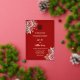 This modern Chinese wedding invitation features a real gold foil double happiness symbol and watercolor painted rose flowers on a red background. With a traditional Chinese text at the backside.