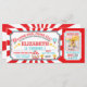 Venez un, venez tous ! Invitation tout le monde à la plus grande fête d’anniversaire sous le grand chapiteau avec notre invitation de billets de carnaval de cirque rouge et turquoise personnalisée avec les modèles photo de votre propre enfant. Ce carnaval de cirque invitations anniversaire comprend arrière - plan de tente de cirque rouge avec carrousel rouge et turquoise et montgolfières sur un style moderne admettre un design de billet personnalisé avec votre propre photo.