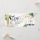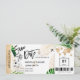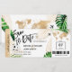Destination Billet de Billet de Mariage Plage Or Avion Enregistrer la Date avec coeur et icône d'avion avec feuilles tropicales