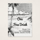 Un modèle de billet d'événement personnalisé de la taille d'une carte de visite pour les encarts d'invitation pour offrir des boissons gratuites, de la nourriture ou tout ce que vous choisissez, avec une illustration d'une gravure vintage tropicale d'une plage avec des palmiers et de beaux nuages sur l'océan, personnalisez-le pour changer les polices, la taille et plus encore, même enregistrer votre design pour plus tard.