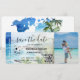 Billet de boarding pour mariage de destination de plage Ticket d'avion or avec illustration de la plage aux palmiers aquarelle, Mexique ou tout autre lieu tropical. Ajoutez votre code QR et photo