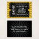 Doré et jaune frais et design noir avec rayons de lumière. Utilisez cette carte de 2,5 po x 3,5 po (un peu plus grande qu'un carte de visite standard) pour tous vos événements et performances spéciaux. Rendez votre événement plus raffiné et mémorable avec des billets imprimés professionnellement. (sans numéros de série ou perforations). Parfait pour les organisations sociales, les jeux scolaires, les arts de la scène, les organismes sans but lucratif, les petites entreprises, les événements sportifs et plus encore! Entrez facilement tous vos détails essentiels et commandez rapidement vos propres billets d'entrée générale ou vip. Plutôt que d'utiliser des billets génériques numérotés, utilisez-les et rappelez à vos clients la date, l'heure et l'emplacement de votre événement. Même inclure des commentaires supplémentaires sur le dos! Customisez la couleur arrière - plan par (après avoir entré votre texte), cliquez sur "customiser", puis cliquez sur "modifier", puis sur "arrière - plan", et choisissez parmi des centaines de couleurs uniques.