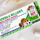 Célébrez votre Baby shower Sport Couples avec notre ticket de baby shower sport all star Invitation. Le design comprend un ballon de football, de baseball, de basket-ball et de rugby/football sur un style de laissez-passer d'entrée d'un stade sportif. Ce design est parfait pour toutes les vedettes sport premier anniversaire, sport 21ème anniversaire, tous les couples sport star douche ou invitation sport jeu.