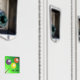 A cool design featuring three colourful pool balls in purple, orange and yellow. A pool cue in the corner on a shaded green background. Calling all pool sharks.