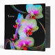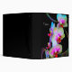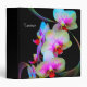 Binder with beautiful, edited Phalaenopsis Orchids and a swirl design. The background is black and the orchids are a combination of pink, white, blue, yellow and red.