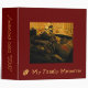 Warm brown, yellow and crimson coloured pencils are used in this illustration that depicts pieces of Americana. A pistol in its holster, brass bullets, an old photo album, pocket watch and a leather flask on top of a bold quilt.