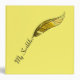 Feather pen. "My Scribbles" is written in script at an angle from the lower left corner of binder front. The writing implement is a feather with various shades of yellow, from dark to light. Background is yellow.