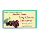 Bunch of Cherries a few with stem and leaf are tucked into the left lower corner of this label with a background of pale yellow all surrounded by a border and background of moderate turquoise green which make this a perfect label to use on your jars of homemade cherry jam or preserves. The text is in template form so you can change it to whatever you wish.