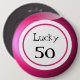 A fun pink button badge with custom text great for a bingo lovers birthday, personalize with an age and name or put your lucky number on it. Click on the image below to see more bingo themed products