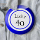 A fun blue button badge with custom text great for a bingo lovers birthday, personalize with an age and name or put your lucky number on it. Click on the image below to see more bingo themed products