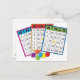 Three colourful bingo cards.