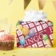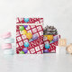 This design has a large bingo card with bingo balls around it in a large repeat pattern printed on gift wrapping paper.
