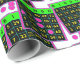 This design has a bingo cards and bingo space markers in neon colours printed on gift wrapping paper.