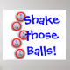 Bingo balls staggered running along one side, "Shake those Balls!" in text.