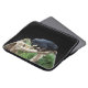 The sleeve is made of nice feeling material and seems very durable. I'm not sure how easy it'll be to clean, but the construction seems sound and the fabric is quick thick. I also like the double zipper. The printing is lovely and appears durable. The white on black contrast is nice, and the design very elegant.