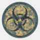 Grungy biohazard symbol in a yellow circle with thorns, heavily distressed. T-shirts, sweatshirts, gifts.