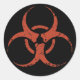The biohazard symbol in red, lightly distressed, on t-shirts, sweatshirts, stickers, cards & gift items.